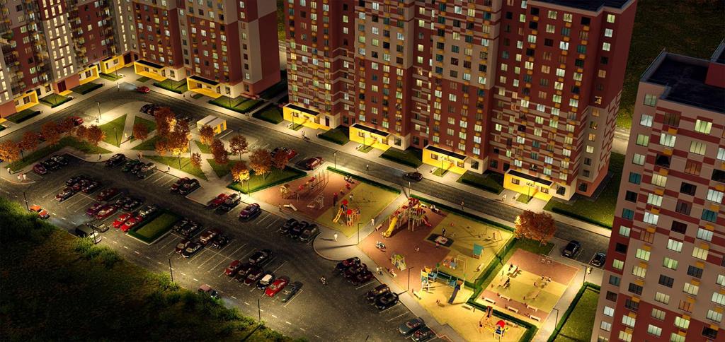 Отдельная многоуровневая парковка. Инфраструктура: детский сад, детские площадки, супермаркет.