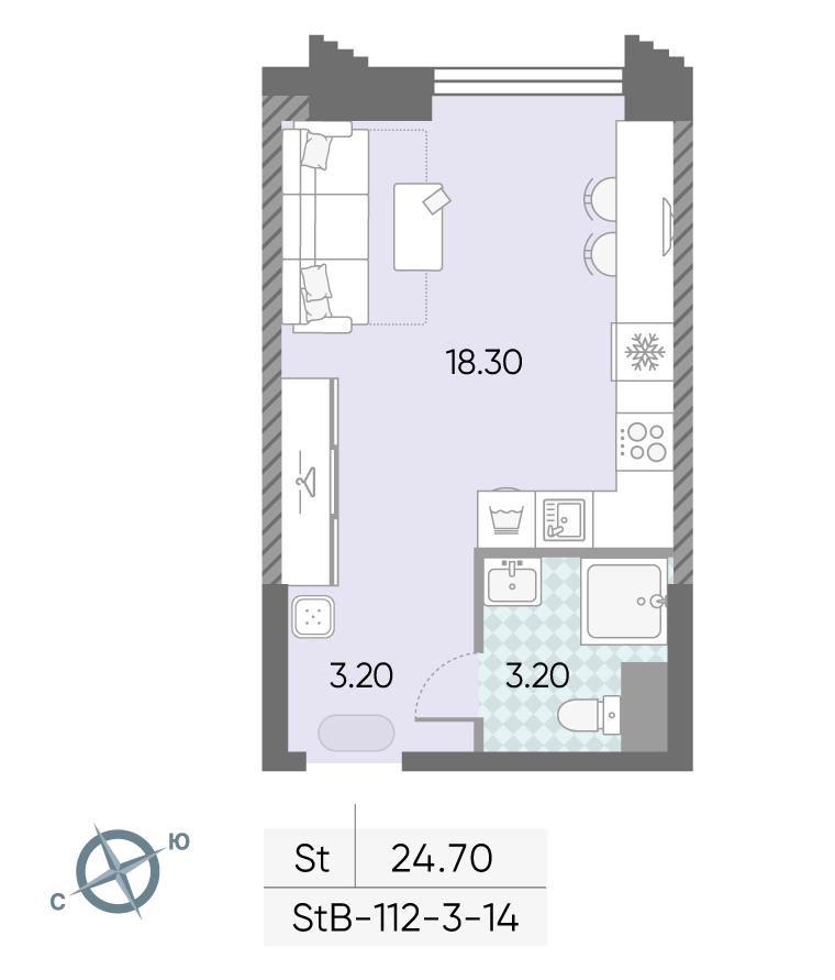 общая 24,7 м2, жилая 14,7 м2, кухни 3,6 м2 |