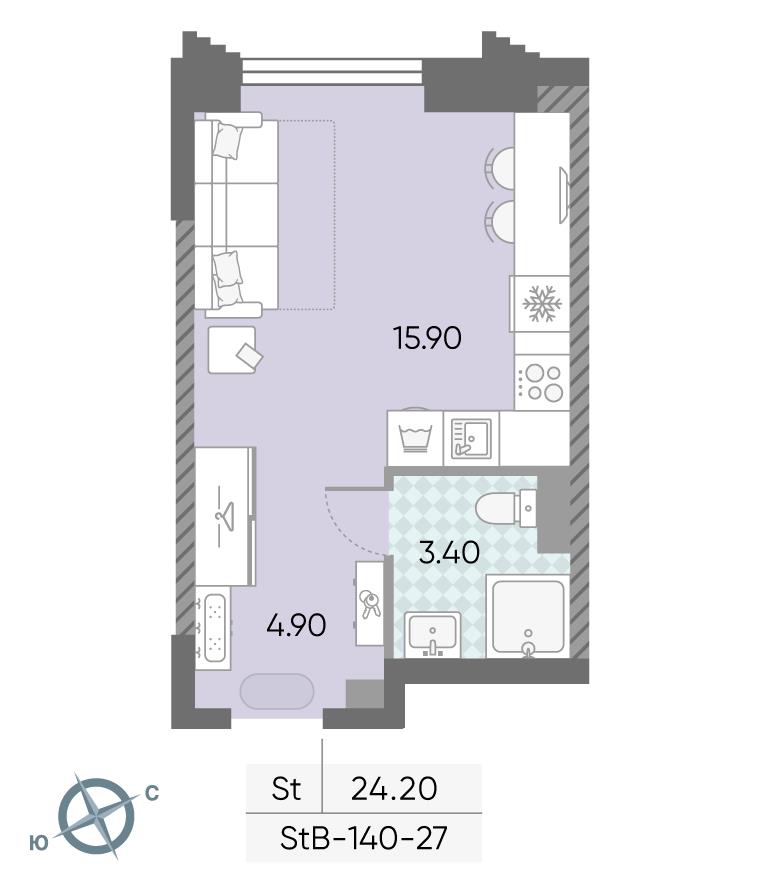общая 24,2 м2, жилая 11,3 м2, кухни 4,6 м2 |