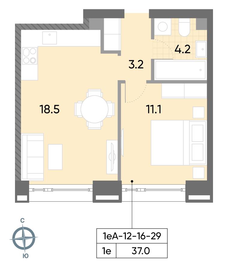 общая 37 м2, жилая 11,1 м2, кухни 18,5 м2 |
