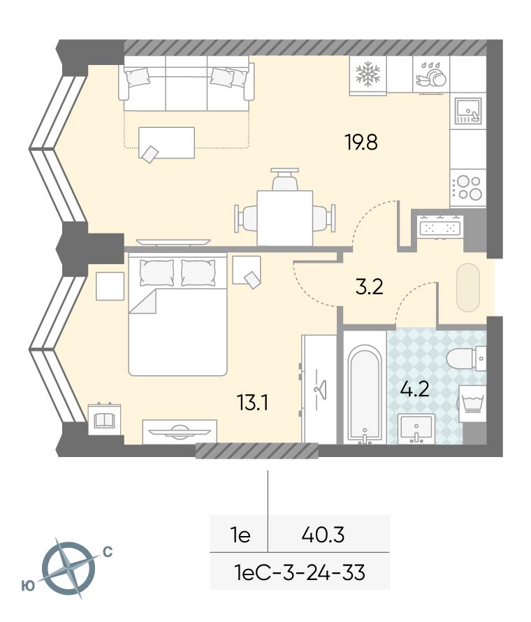 общая 40,3 м2, жилая 26,4 м2, кухни 6,5 м2 |