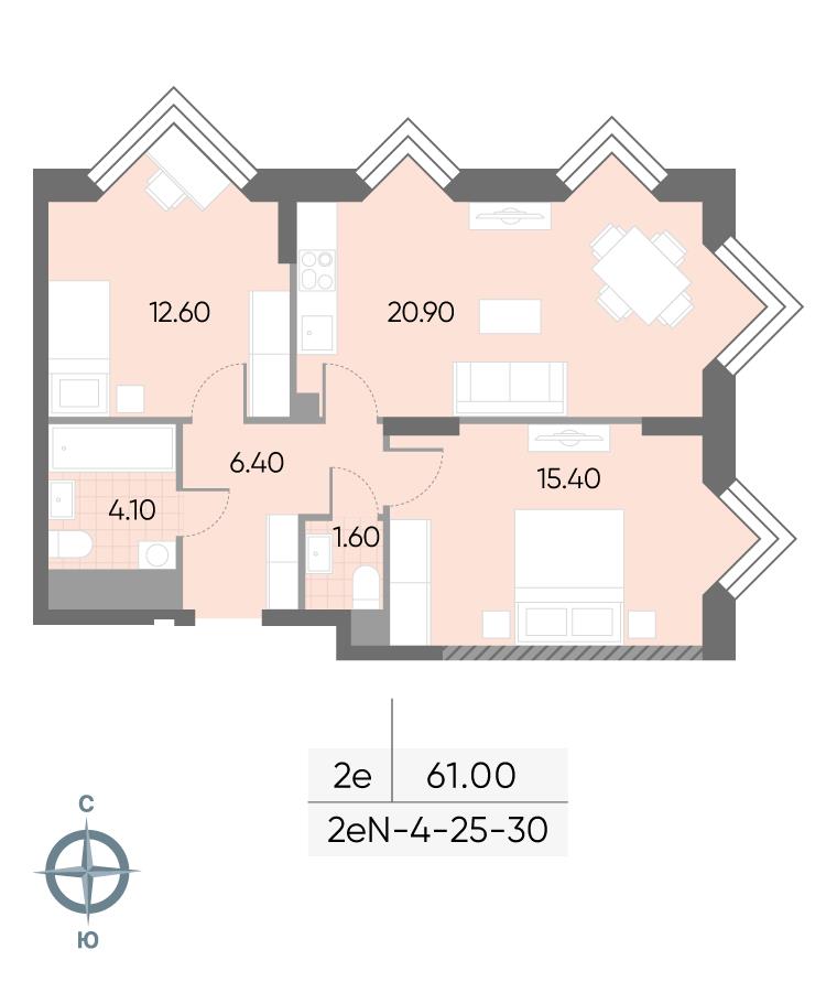 общая 61 м2, жилая 43,3 м2, кухни 5,6 м2 |