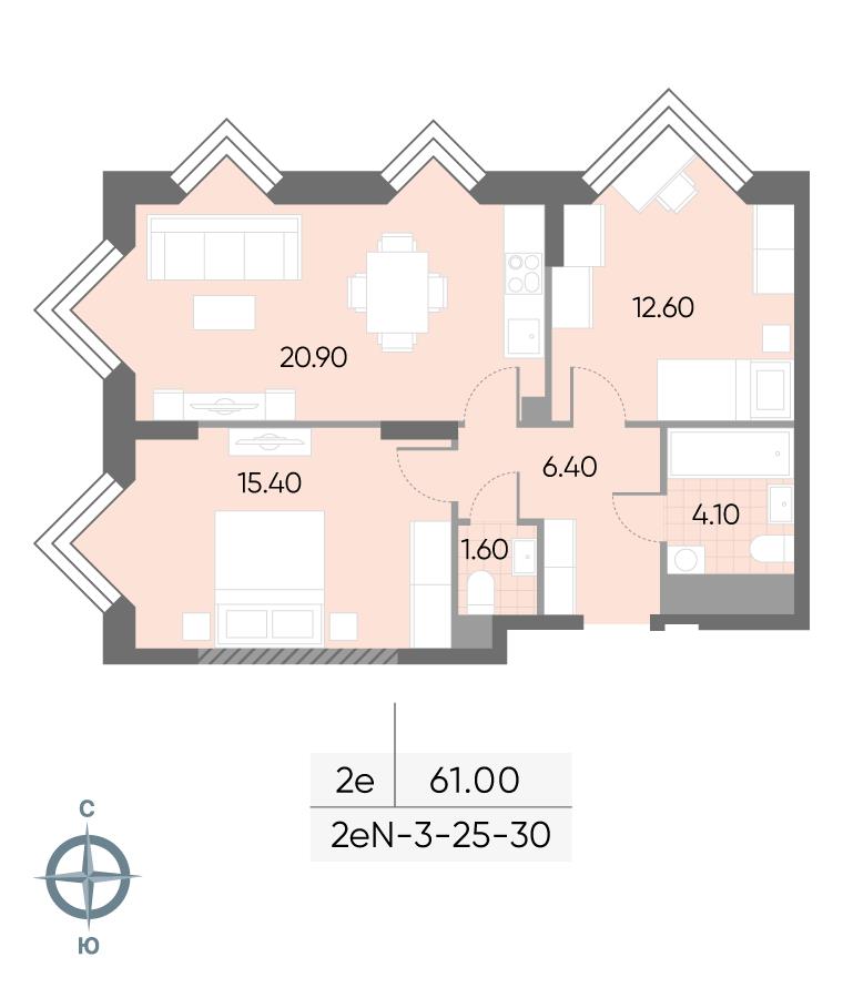 общая 61 м2, жилая 43,3 м2, кухни 5,6 м2 |