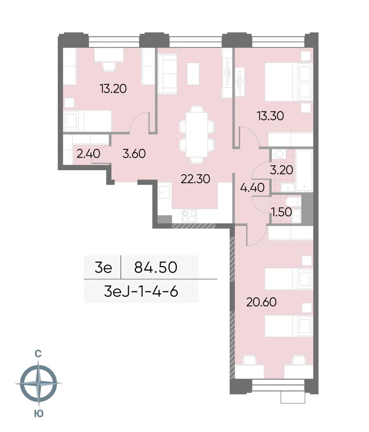 общая 84,5 м2, жилая 47,1 м2, кухни 22,3 м2 |
