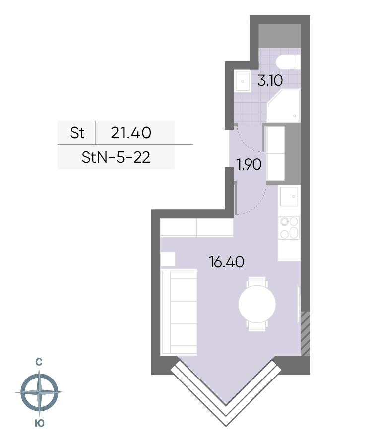общая 21,4 м2, жилая 12,2 м2, кухни 4,2 м2 |
