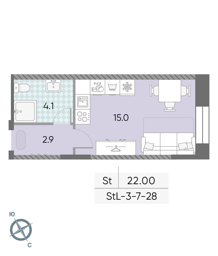общая 22 м2, жилая 10 м2, кухни 5 м2 |