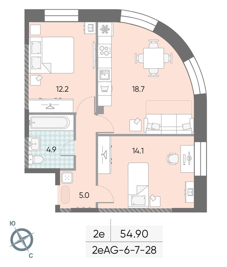 общая 54,9 м2, жилая 26,3 м2, кухни 18,7 м2 |