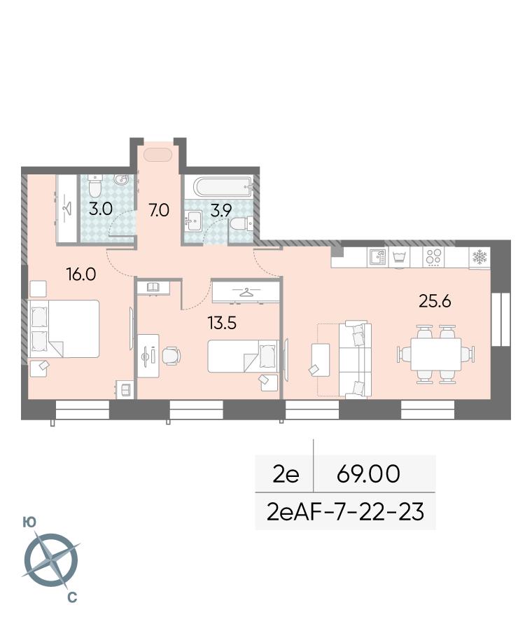 общая 69 м2, жилая 49,1 м2, кухни 6 м2 |