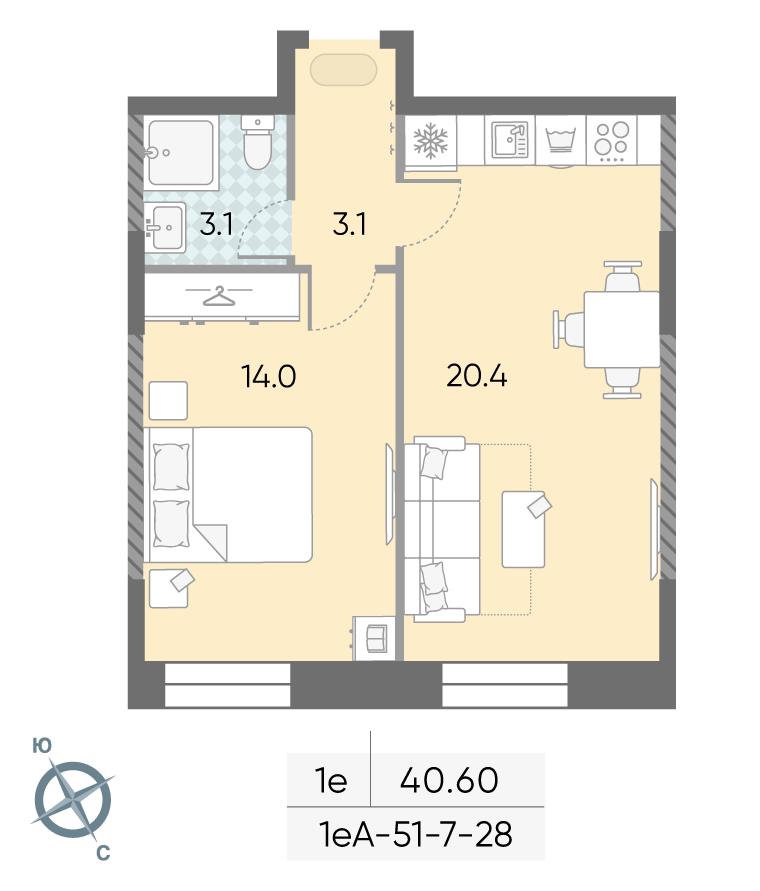 общая 40,6 м2, жилая 28,4 м2, кухни 6 м2 |