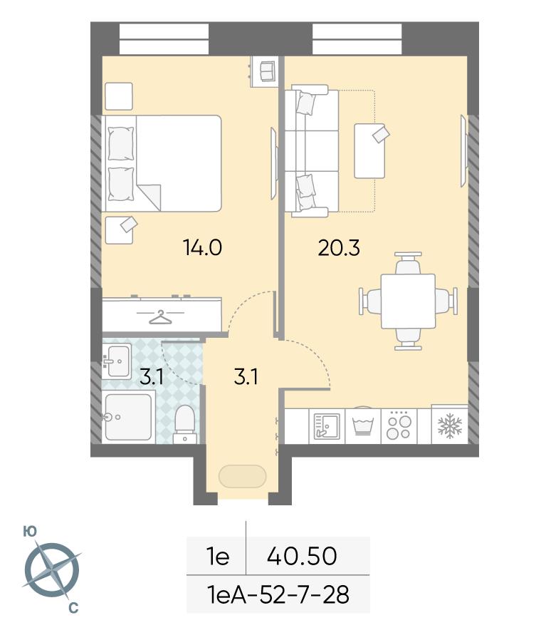 общая 40,5 м2, жилая 14 м2, кухни 20,3 м2 |