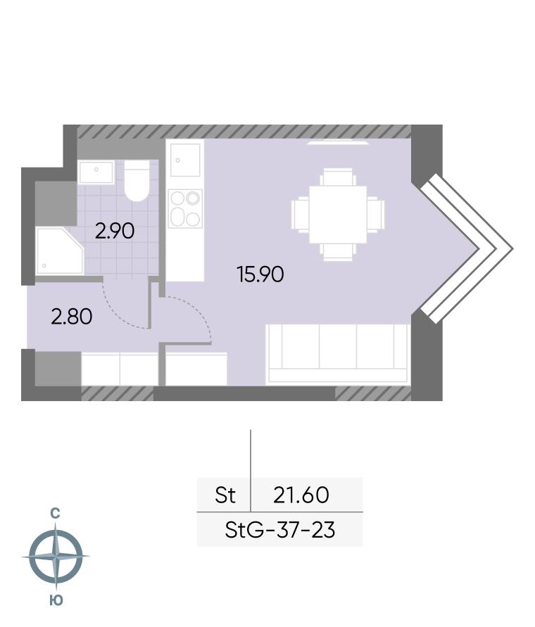 общая 21,6 м2, жилая 11,5 м2, кухни 4,4 м2 |