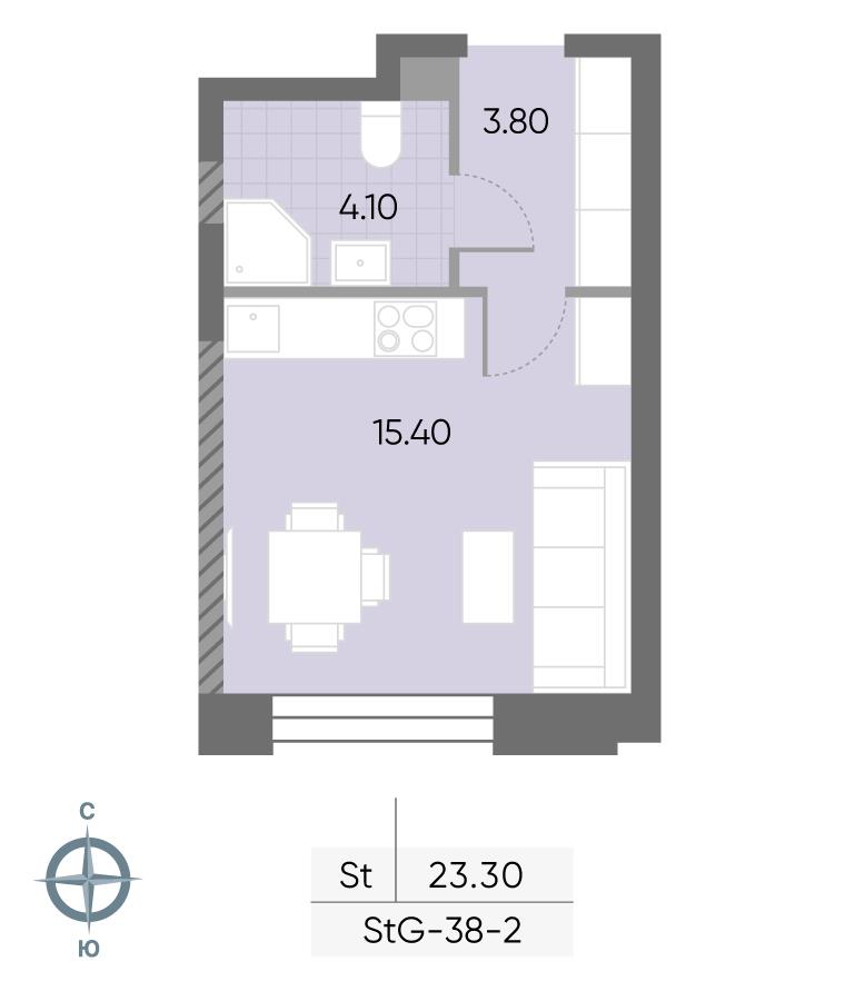 общая 23,3 м2, жилая 10,3 м2, кухни 5,1 м2 |