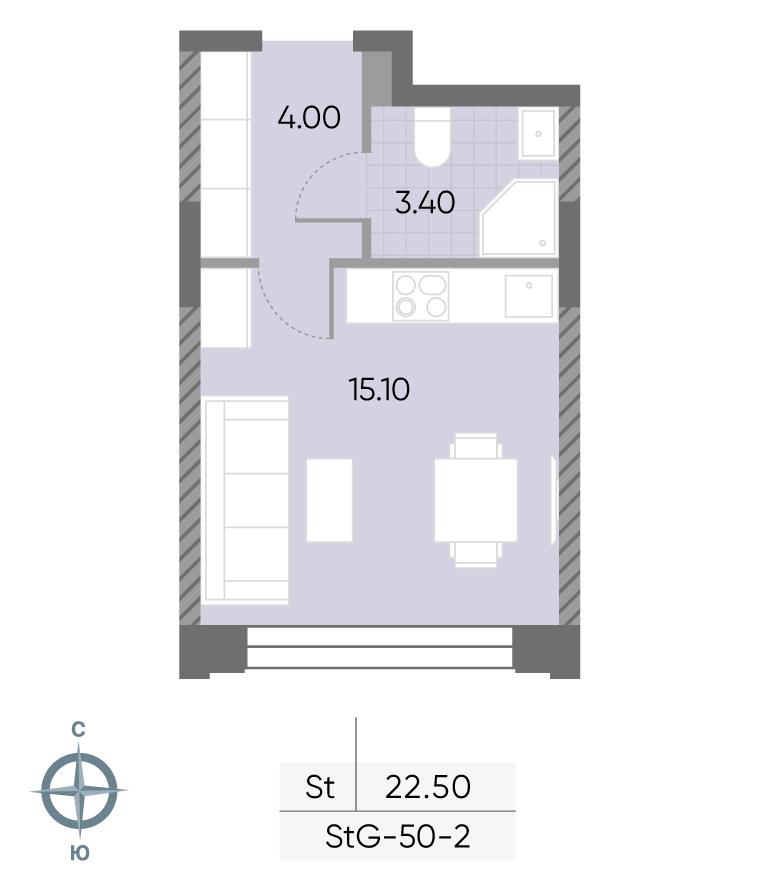 общая 22,5 м2, жилая 10,1 м2, кухни 5 м2 |