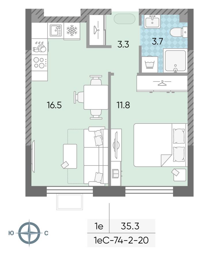 общая 35,3 м2, жилая 23,6 м2, кухни 4,7 м2 |