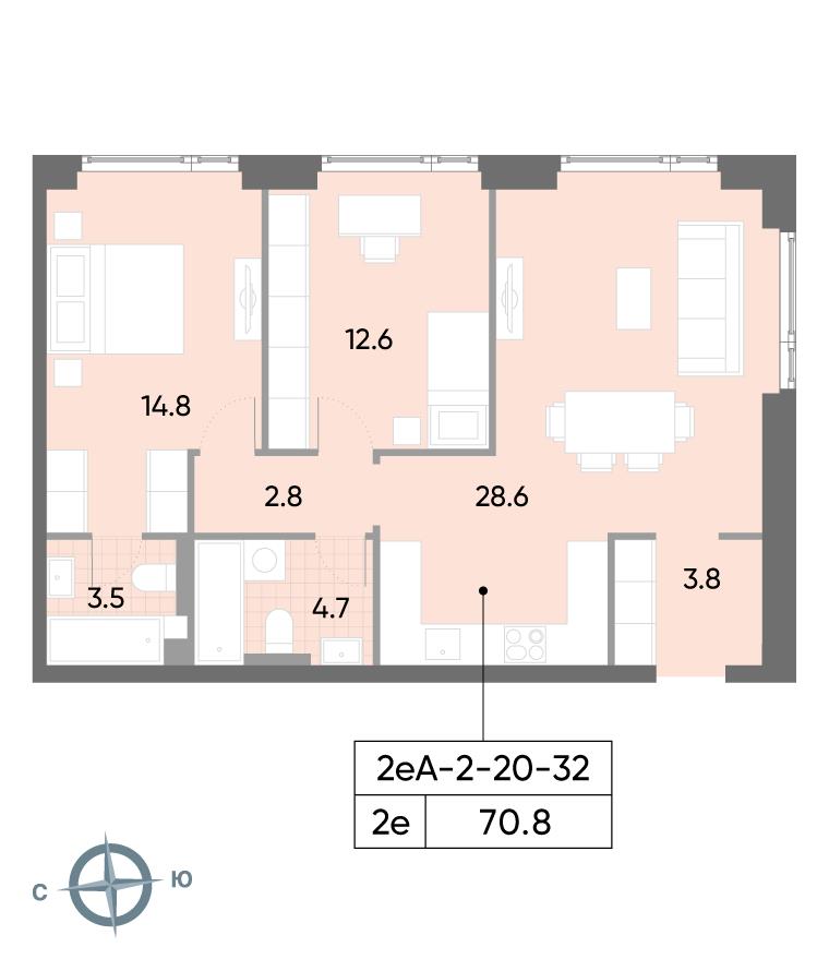 общая 70,8 м2, жилая 27,4 м2, кухни 28,6 м2 |