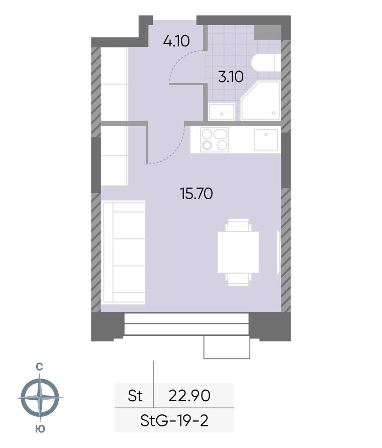 общая 22,9 м2, жилая 10,1 м2, кухни 5,6 м2 |