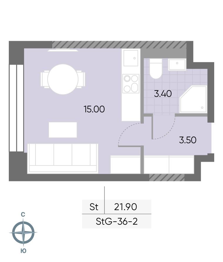 общая 21,9 м2, жилая 10,3 м2, кухни 4,7 м2 |