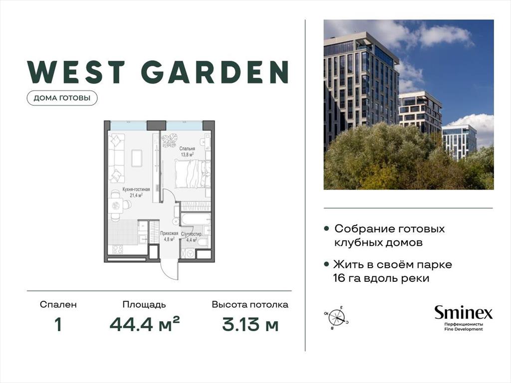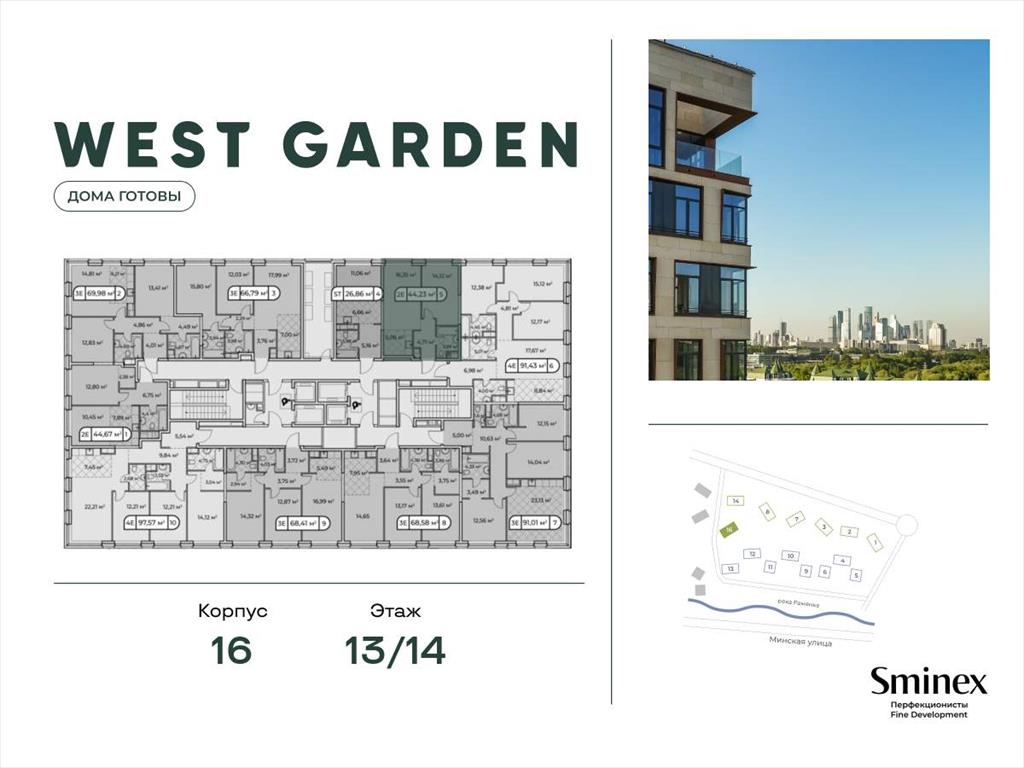 West Garden - это собрание клубных домов высотой 12-14 этажей в собственном парке 16 гектаров вдоль реки. Просторный среднеэтажный квартал расположен на Минской улице, в респектабельном Западном округе столицы. Вокруг премиальное окружение и более 1000 гектаров парков.