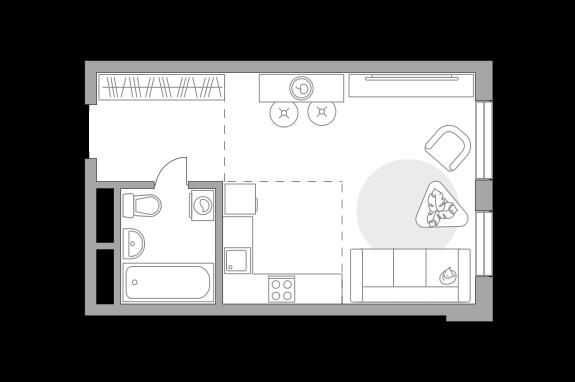 общая 28,9 м2, жилая 15,07 м2, кухни 5,02 м2 |