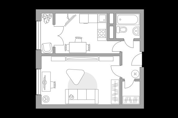 Жилая площадь 17.22 м2, кухня 10.58 м2, черновая отделка, комнаты изолированные, лоджий - 1, окна выходят во двор.