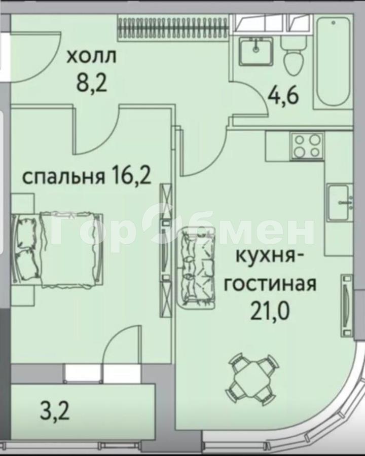 общая 50 м2, жилая 37 м2, кухни 5 м2 |