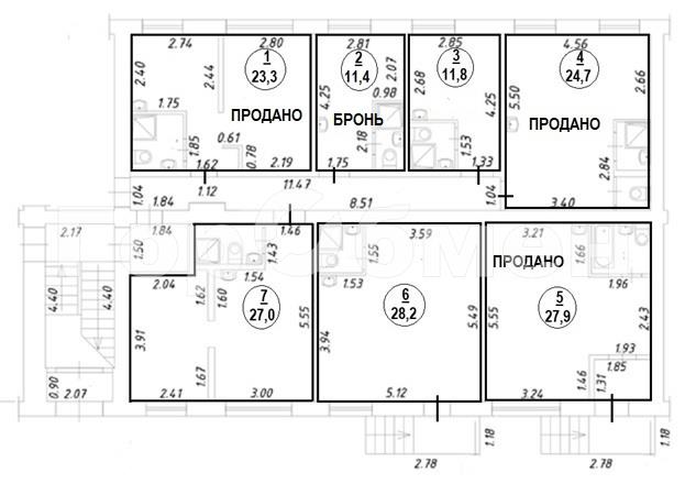 общая 11,8 м2, жилая 7 м2, кухни 2 м2 |