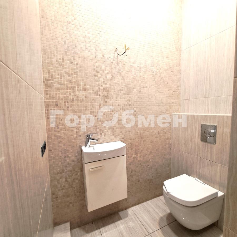 Общая площадь 134,4 кв.м., на 1 этаже расположены кухня-гостиная 43,4 кв.м., две жилые комнаты – 17,1 кв.м. и 18,9 кв.м. с нишей под гардероб, два санузла: гостевой и мастер-санузел с душевой кабиной (Италия) и ванной. На втором этаже – пространство 25,4 кв.м. с санузлом (включая душ).