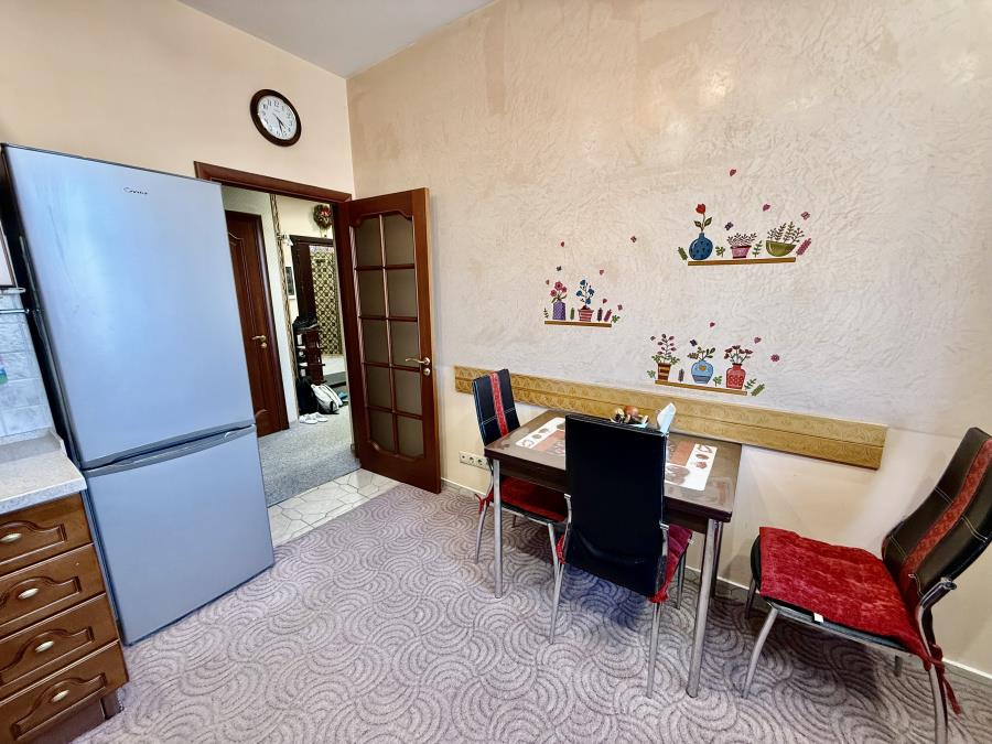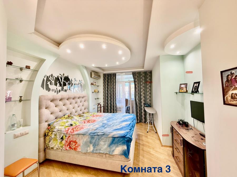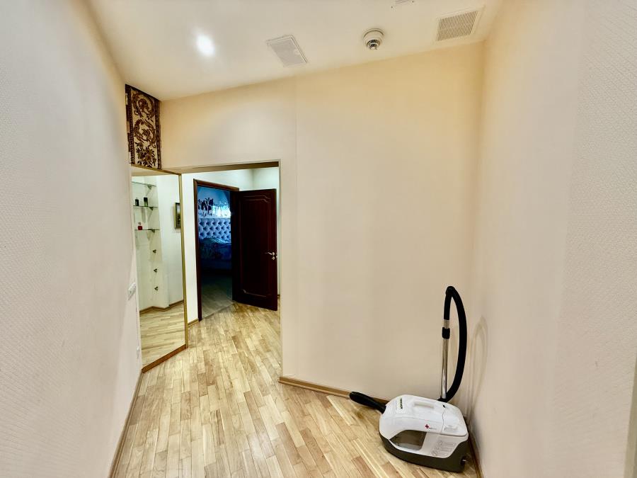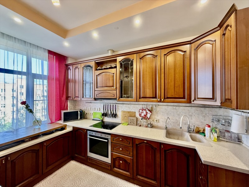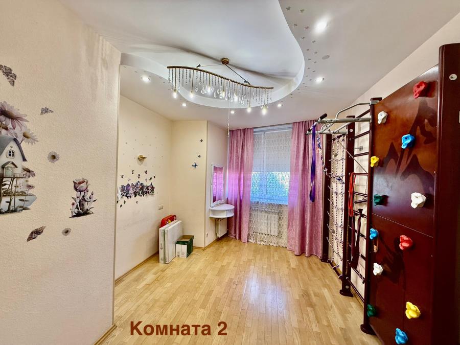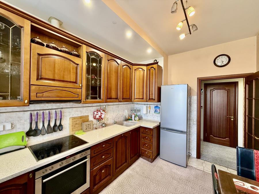 Планировка: просторная кухня (11,2 м2), гостиная (14 м2), из гостиной выход на лоджию (7,5 м2), три изолированные комнаты: 1) комната 1 - 12 м2; 2) комната 2 - 17,3 м2 с гардеробной зоной (3,7 м2); 3) комната 3 - 22 м2, в комнате есть вход в просторную ванную (15,8 м2) с сауной, есть гардеробная зона и выход на лоджию (6,5 м2), на лоджии компьютерный стол. Есть еще гостевой санузел с душевой кабиной. Состояние хорошее, встроенная кухня, посудомоечная машина, встроенные шкафы, бойлер, кондиционер остаются, остальная мебель обсуждается за отдельную стоимость, свободная продажа, два взрослых собственника, полная стоимость в договоре. Прекрасная инфраструктура, в доме стоматология, рядом много ТРЦ, фитнес, парковые зоны, подземная парковка, консьерж. До метро 3 мин пешком.