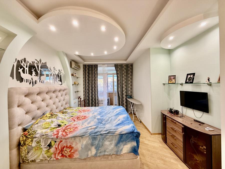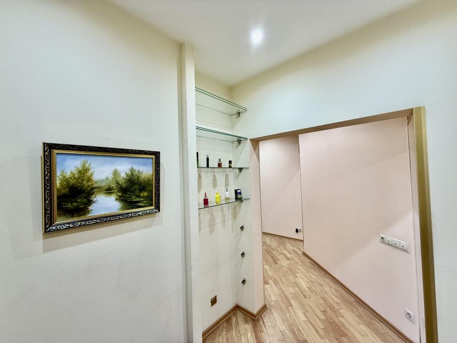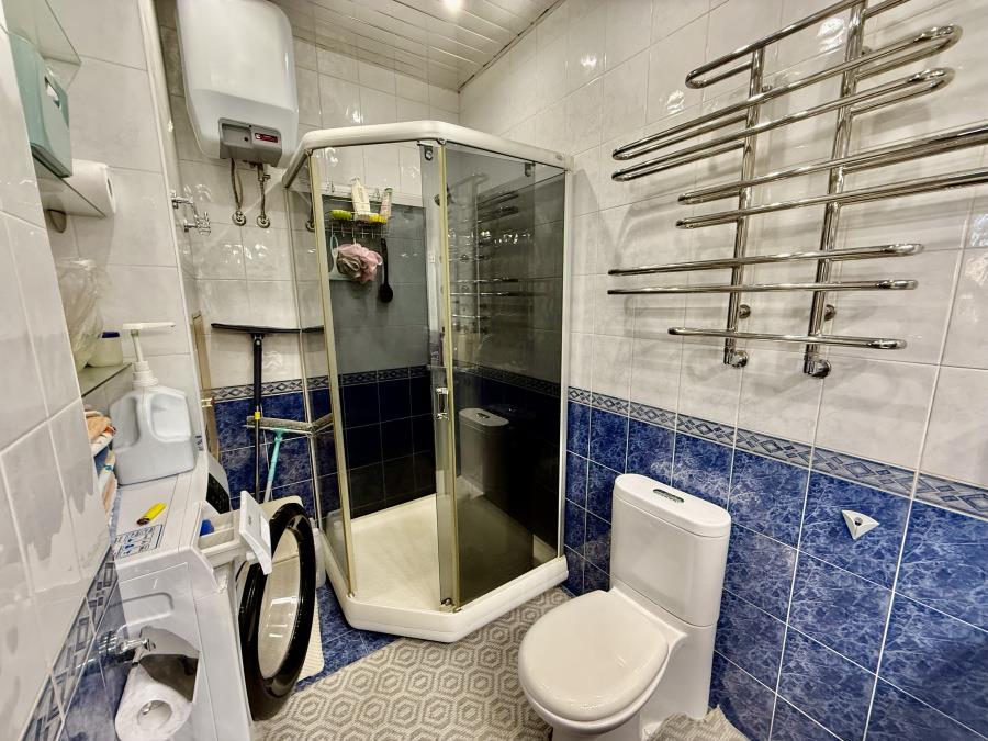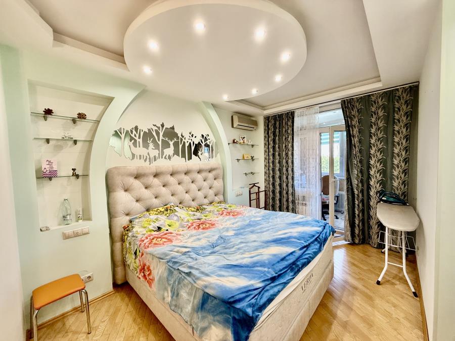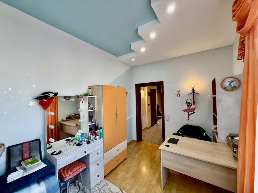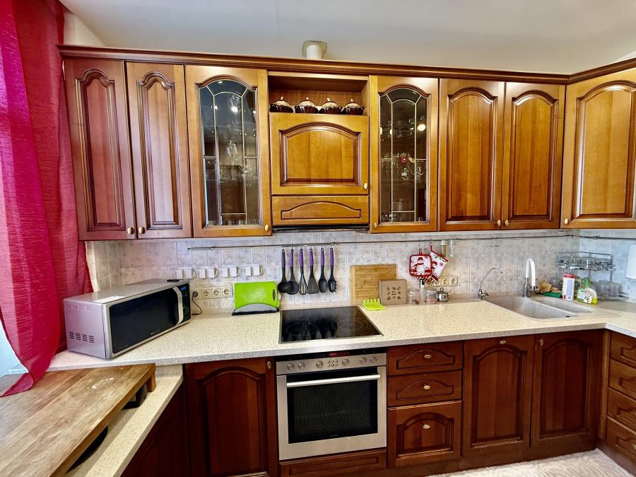 Планировка: просторная кухня (11,2 м2), гостиная (14 м2), из гостиной выход на лоджию (7,5 м2), три изолированные комнаты: 1) комната 1 - 12 м2; 2) комната 2 - 17,3 м2 с гардеробной зоной (3,7 м2); 3) комната 3 - 22 м2, в комнате есть вход в просторную ванную (15,8 м2) с сауной, есть гардеробная зона и выход на лоджию (6,5 м2), на лоджии компьютерный стол. Есть еще гостевой санузел с душевой кабиной. Состояние хорошее, встроенная кухня, посудомоечная машина, встроенные шкафы, бойлер, кондиционер остаются, остальная мебель обсуждается за отдельную стоимость, свободная продажа, два взрослых собственника, полная стоимость в договоре. Прекрасная инфраструктура, в доме стоматология, рядом много ТРЦ, фитнес, парковые зоны, подземная парковка, консьерж. До метро 3 мин пешком.