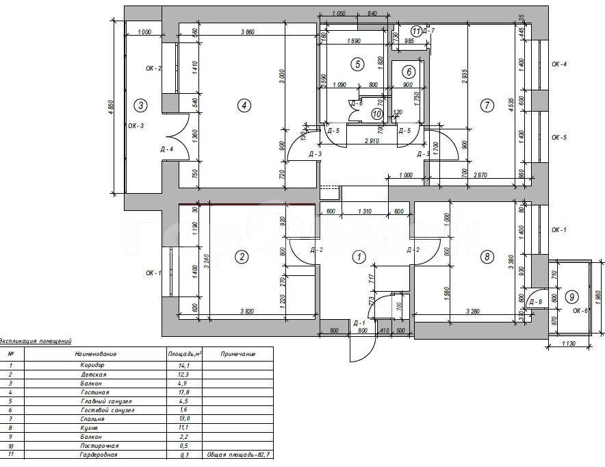 общая 75 м2, жилая 43 м2, кухни 11 м2 |