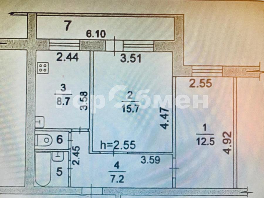 Полезная площадь квартиры с учетом застекленной лоджии составляет 53,6 кв. м.