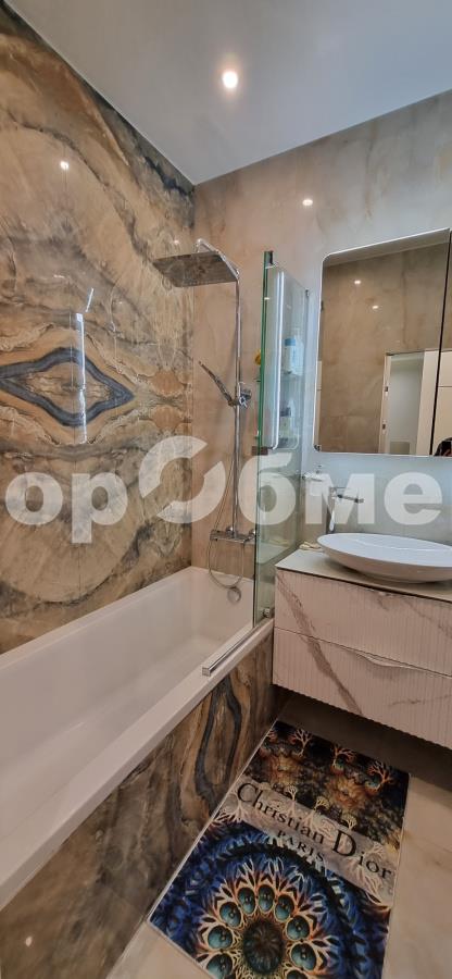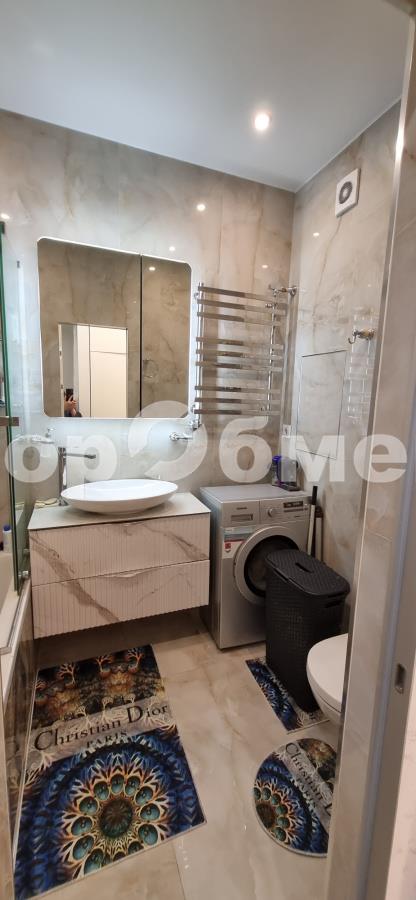 Дизайнерский ремонт, продуманная планировка. Кухня Дриада; бытовая техника американского бренда KitchenAid (холодильник, ПММ, варочная панель, духовой шкаф), обои Trussardi. Санузел совмещённый, сантехника Villeroy&Boch.