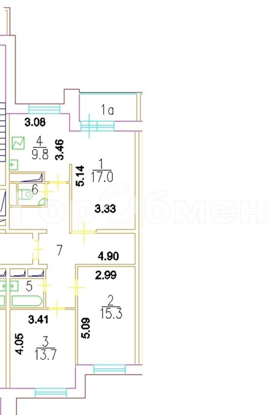 **Общая площадь квартиры** составляет 76,5 квадратных метров + лоджия 4,2 кв.м— это достаточно просторное жильё, которое сможет удовлетворить потребности даже большой семьи. В квартире три изолированные комнаты. Площади комнат: 15,3/13,7/17 кв.м. Кухня 9,8 кв.м