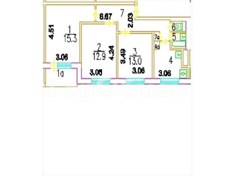 общая 58,5 м2, жилая 39,3 м2, кухни 7 м2 |
