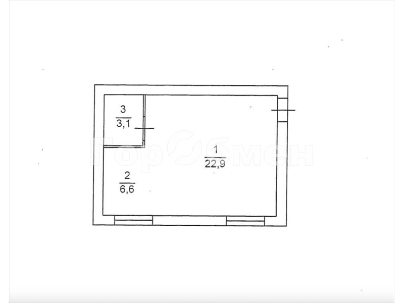 общая 33 м2, жилая 22,9 м2, кухни 6,6 м2 |
