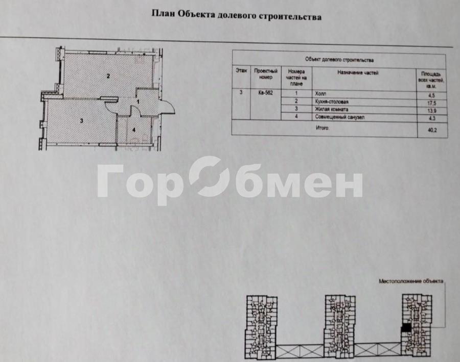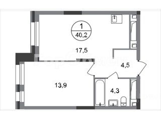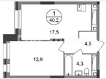 общая 40,2 м2, жилая 13,9 м2, кухни 17,5 м2 |