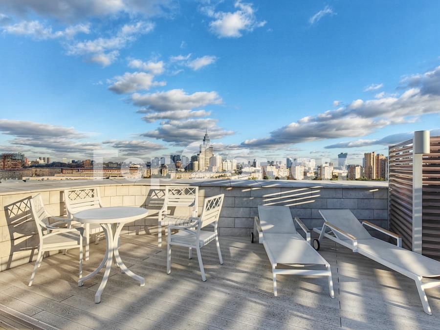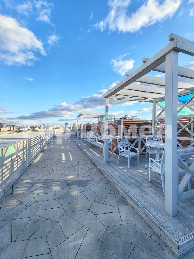 Благоустроенная крыша: лаундж-зона, беседки, панорамный вид.
