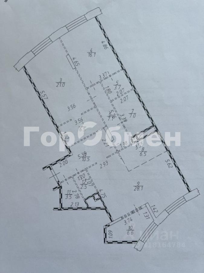 Удобная распашная планировка с идеально проработанной эргономикой пространства: просторная кухня-гостиная 34,6 м2, две изолированные спальни 21/16,1 м2 со своими гардеробными 6,5/3,7 м2 , вместительная прихожая 10,5 м2, гардеробная для верхней одежды 3,5 м2, два с/у 7/2,5 м2, коридор 7,1 м2 и кабинет 6,6 м2 с прекрасным видом на исторический Посёлок художников и улицу Врубеля. В квартире грамотно поделено пространство на приватную и общественную зоны.