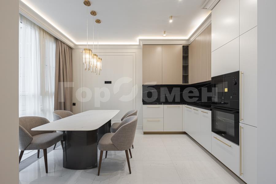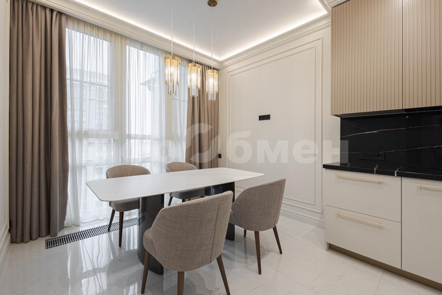 В квартире выполнена качественная отделка с использованием премиальных материалов, элементы декора.