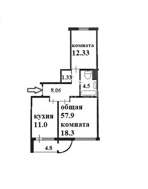 Двухкомнатная квартира 57,90 м2 по ул. Строителей 2 за 12500000 руб. |