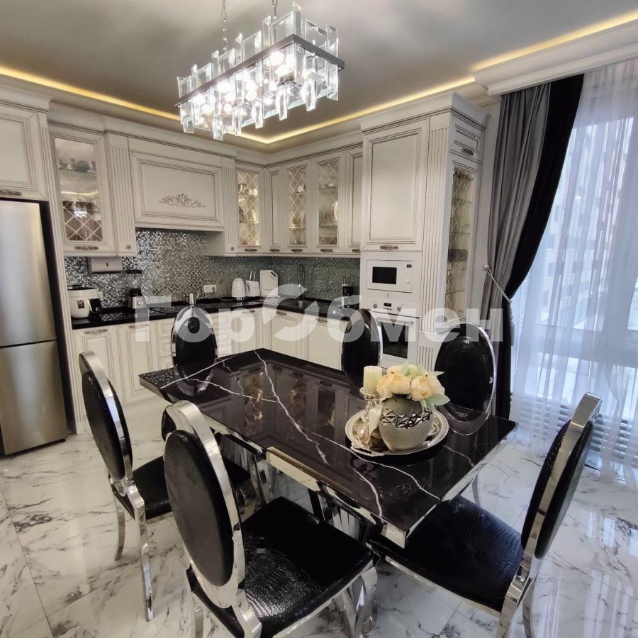 Попадая в квартиру вы попадаете в атмосферу роскоши и уюта. В квартире продуманно всё до мелочей. В квартире произведён высококачественный дизайнерский ремонт из дорогих материалов. Два санузла. Бытовая комната. Комната для хранения вещей. Встроенная кухня с бытовой техникой. Посудомоечная машина. Стиральная машина. Встроенные шкафы. Потолки с роскошными люстрами, с красивой подсветкой. Итальянские двери. Установлен кондиционер. Панорамные окна. Теплые полы. Большая кухня гостиная. Поделена на зоны. Квартира выполнена как евро четырёхкомнатная.