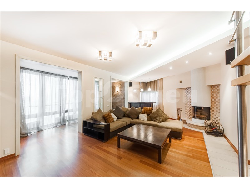 На 1-ом уровне размещена функциональная кухня площадью 17,9 кв.м, гостиная с панорамным остеклением, которое открывает красивый вид на Москву-Сити, каминный зал, гардеробная, санузел с душевой кабиной.