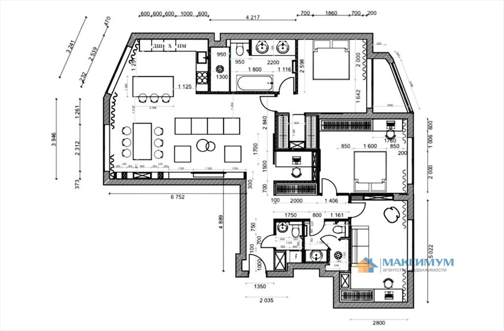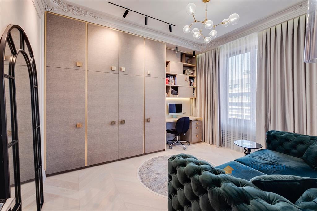 - Мастер спальня с большой кроватью, сделанной на заказ, гардеробной, утепленной лоджией и прекрасной, большой ванной комнатой;