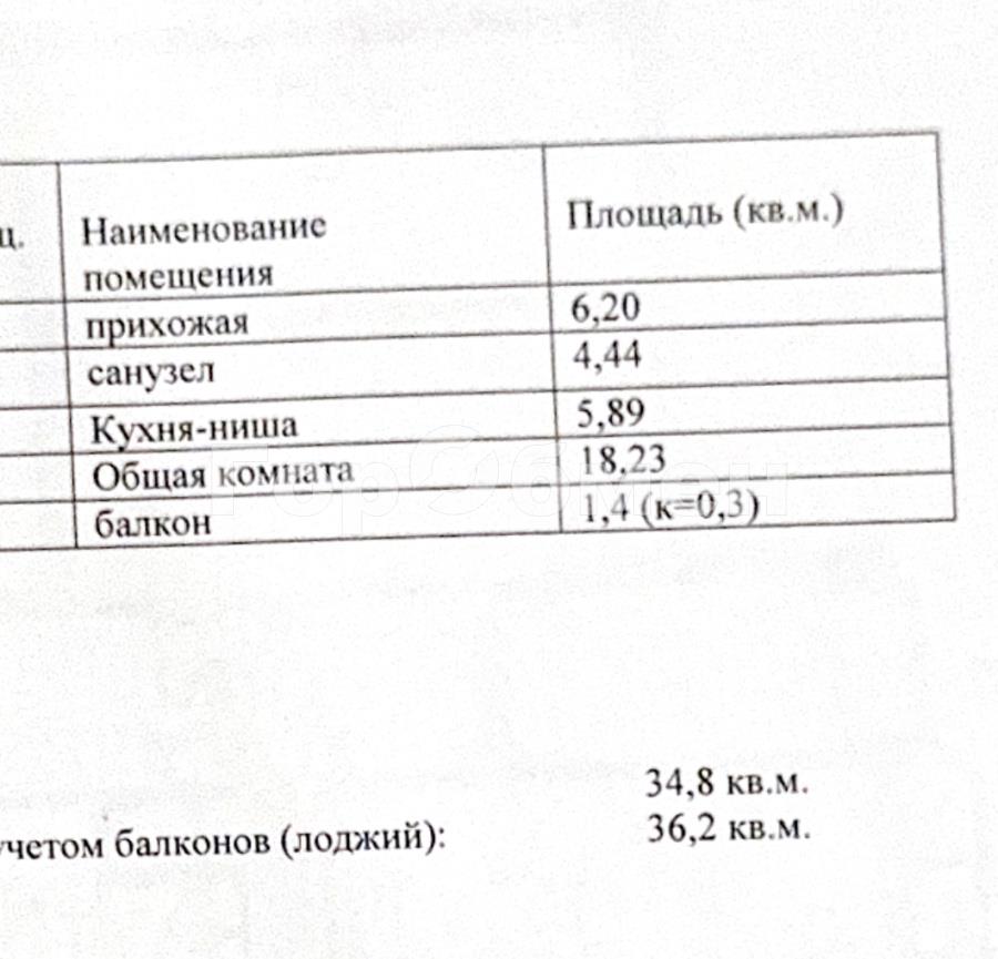 общая 36,2 м2, жилая 18 м2, кухни 6 м2 |