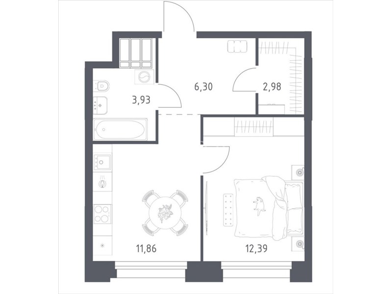 общая 37,7 м2, жилая 12,4 м2, кухни 12 м2 |