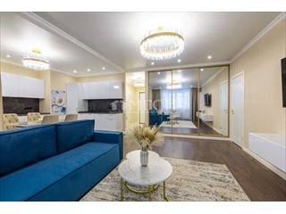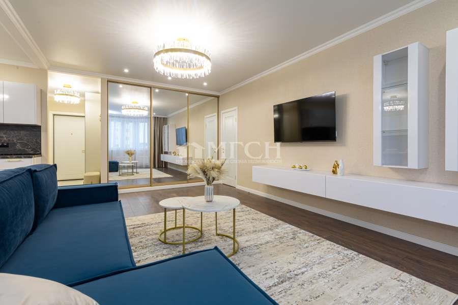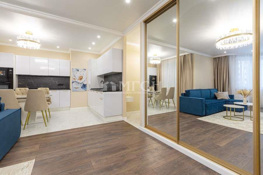 Просторная кухня - гостиная оборудована кухонным гарнитуром со всей необходимой встроенной современной бытовой техникой (варочная поверхность, вытяжка, духовой шкаф, микроволновая печь, посудомоечная машина, холодильник). Несколько сценариев освещения, нейтральная светлая палитра, зеркальная вместительная гардеробная система, Smart ТV диагональ 55“, ТV диагональ 40” делают квартиру уютной и располагающей к отдыху.