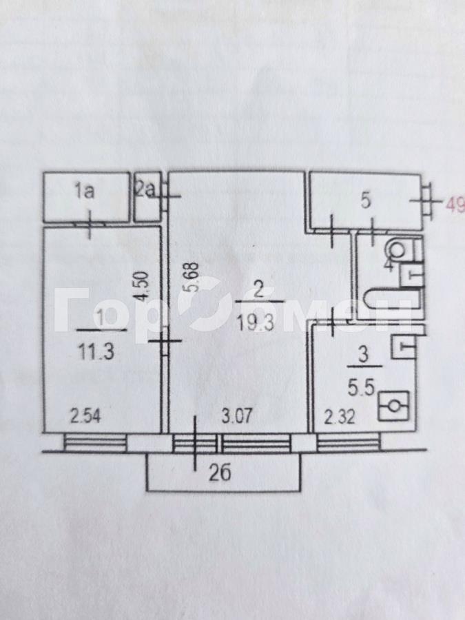 общая 45,2 м2, жилая 30,6 м2, кухни 5,5 м2 |