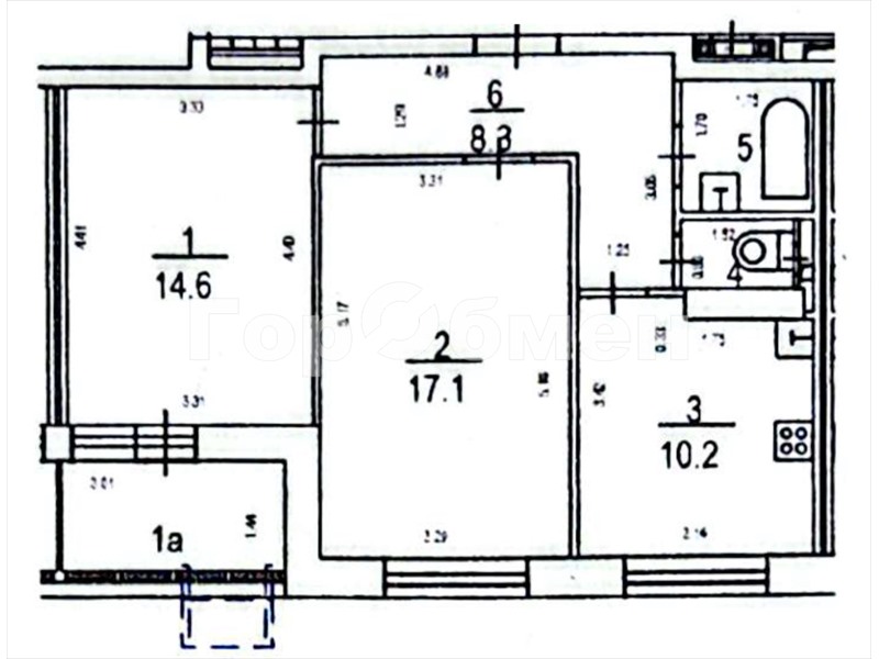 общая 55 м2, жилая 32 м2, кухни 10 м2 |