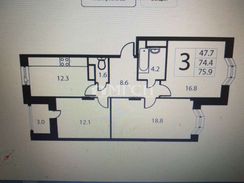 Трехкомнатная квартира 75,00 м2 по ул. микрорайон Город-Событие 21 за 11000000 руб. |