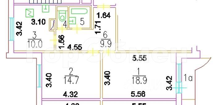 Двухкомнатная квартира 57,40 м2 по ул. Пятницкое шоссе 6 за 18400000 руб. |